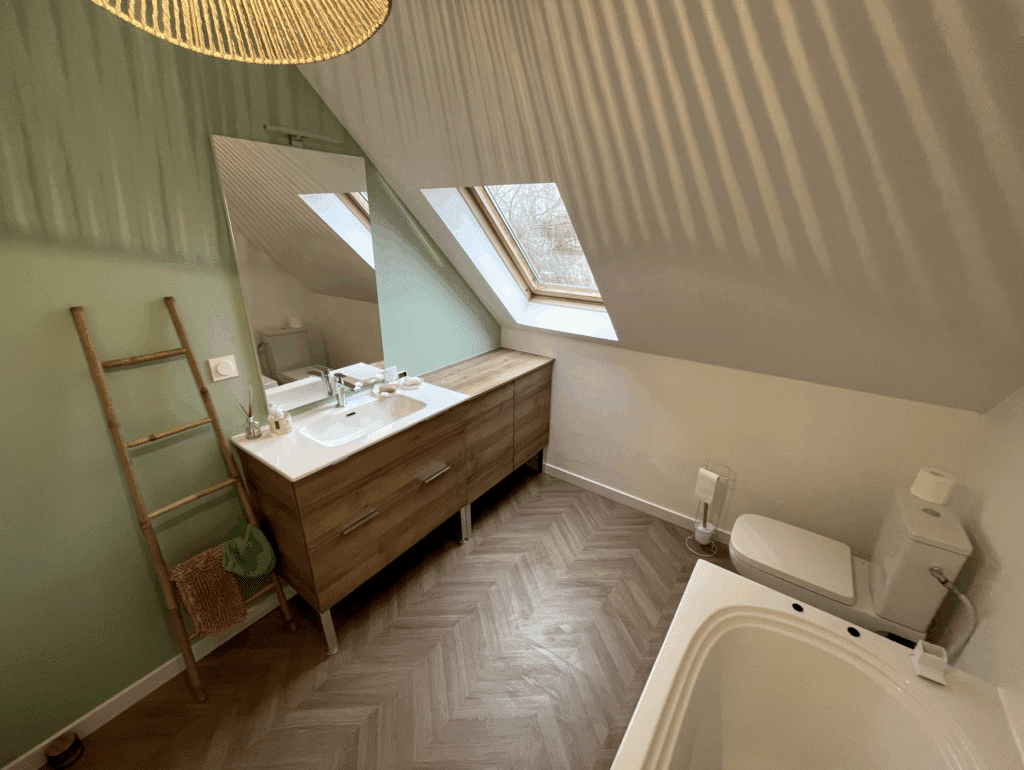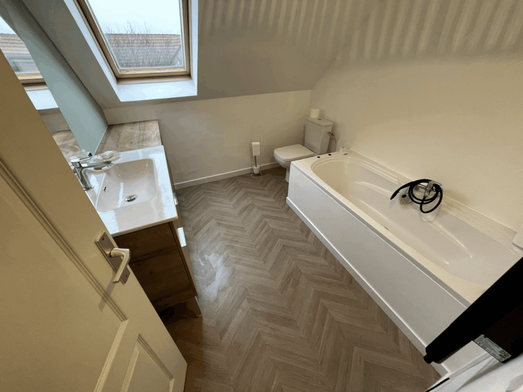 Dans ce projet, la salle de bain a bénéficié d’une rénovation complète alliant modernité et fonctionnalité. Les espaces ont été repensés, les surfaces rénovées, et les équipements remplacés pour offrir un cadre à la fois pratique et agréable. Une attention particulière a été portée aux finitions et à l’éclairage, pour un résultat harmonieux et contemporain.
